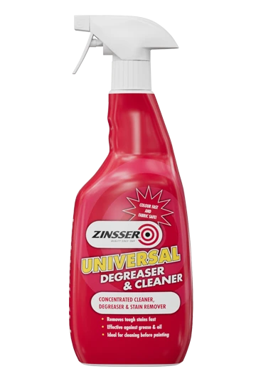 Zinsser Universal Degreaser & Cleaner is a water-based degreaser spray that is colour fast, fabric safe and removes tough stains quickly and effectively from many surfaces.