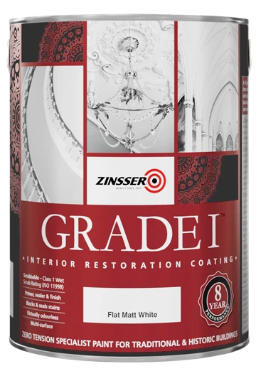 Zinsser Grade 1 is a high performance, mould resistant paint for the interior decoration of walls and ceilings in traditional and historic buildings, including churches, castles and period properties.