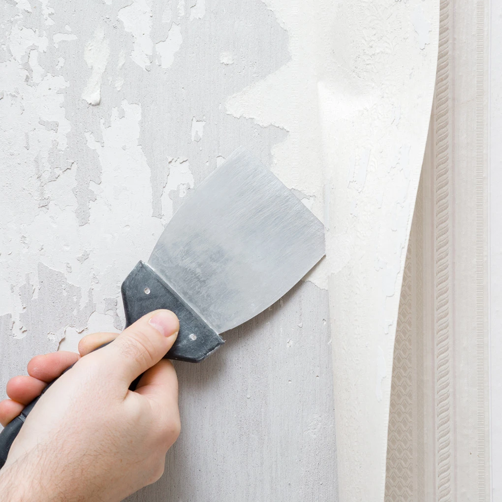 Prepare and apply the wallpaper stripper solution to the scored wallpaper in accordance with the manufacturer’s instructions and drying times. Re-wet if necessary then remove the wallpaper with a wallpaper scraper. Wash down the wall to remove excessive wallpaper adhesive. Rinse thoroughly to remove any residue and allow surface to dry.