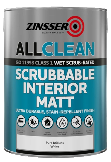 AllClean® Matt is a highly durable, scrubbable, stain resistant, flat matt finish with flawless, even coverage. Protects against scuffs and stains*. For use in homes, schools or commercial buildings, AllClean® Matt is great for ceilings and walls in any interior area.