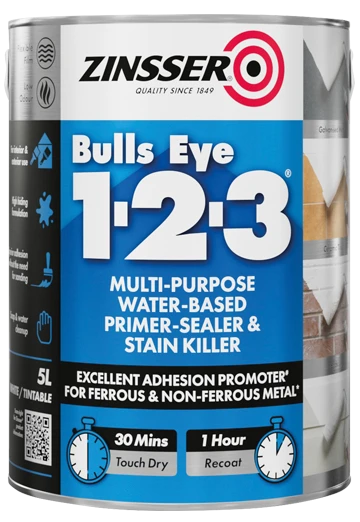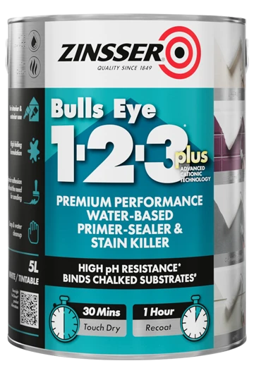 Bulls Eye® 1-2-3 is our classic universal interior and exterior, water-based, primer-sealer. It offers low odour application, quick drying convenience and excellent adhesion to glossy surfaces.