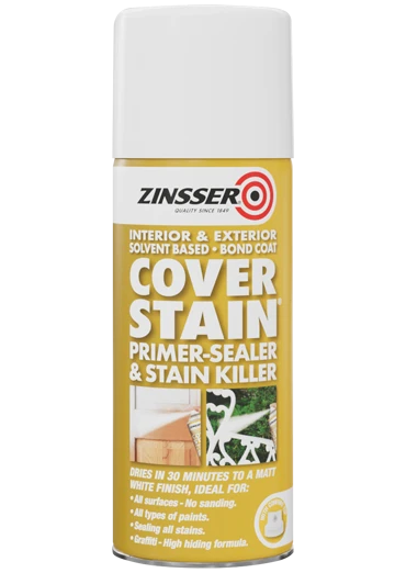 Cover Stain® Aerosol dries quickly and provides outstanding stain killing and undercoating performance. Especially effective on nicotine and water stains. Dries in just 35 minutes and can be recoated in 2 hours.