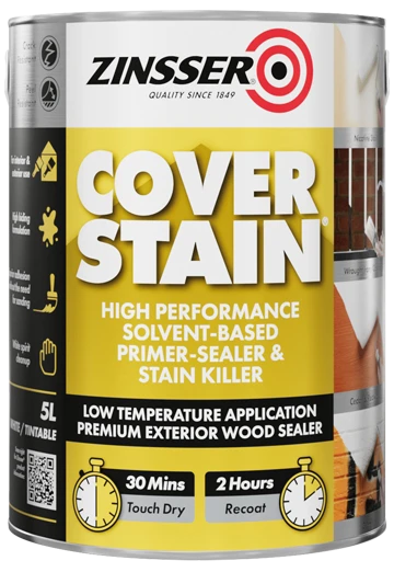 The best stain block on the market, Zinsser Cover Stain® excels at tackling tough stains like water, smoke, nicotine, and tannin bleed. Its exceptional adhesion works on a variety of surfaces, including wood, cured plaster, metal, and masonry.