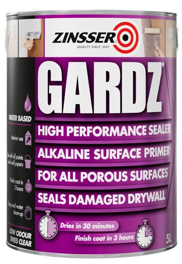 A unique, water-based, problem surface sealer for porous and challenging surfaces. Gardz® is formulated to deeply penetrate and dry to a hard, moisture resistant film that seals and binds down porous, chalky and crumbling surfaces, paints and textured finishes.