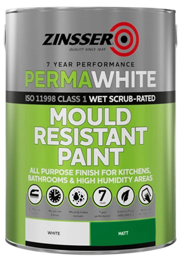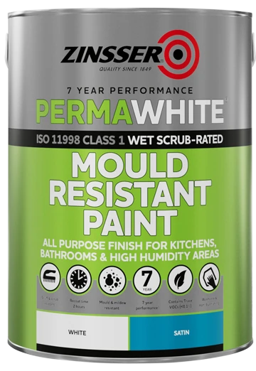 Zinsser PermaWhite® mould resistant paint is suitable for interior walls and ceilings, with a biocide to protect against fungal degradation* once dry.
