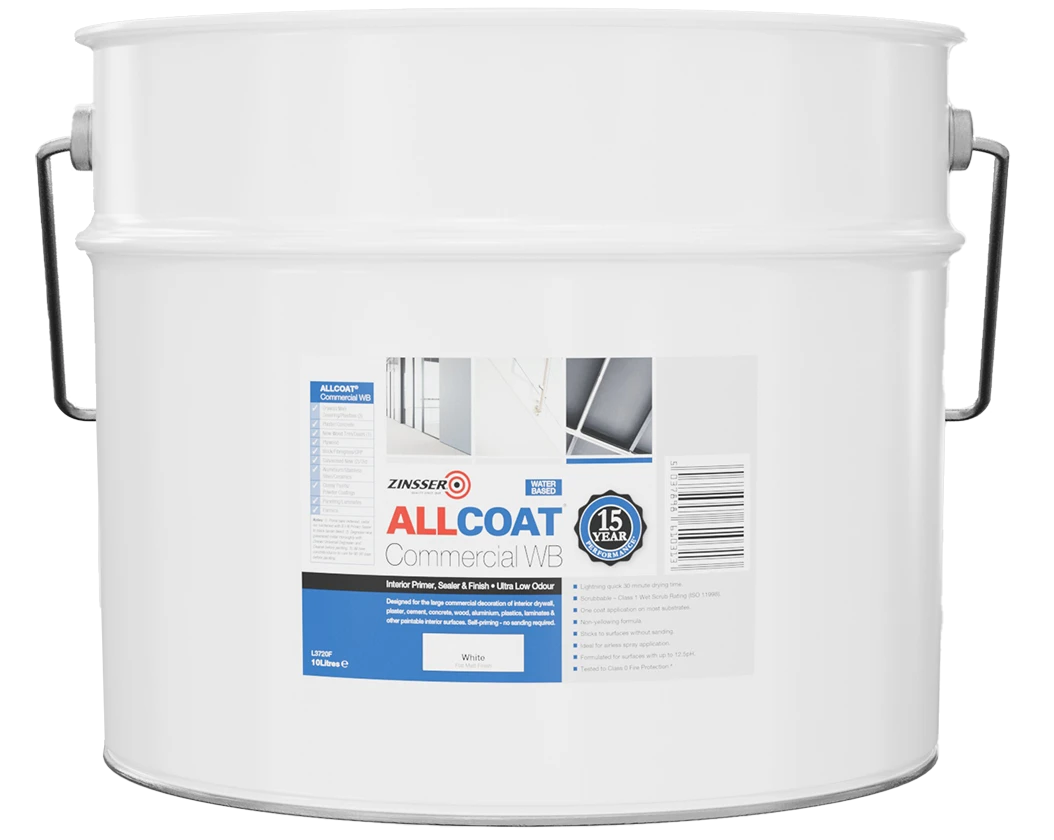 AllCoat® Commercial (water-based) is a multi-surface primer, sealer and finish for interior applications. It is perfect for large commercial environments and ideally suited to airless spraying. One coat is all that is needed to cover and seal most surfaces.