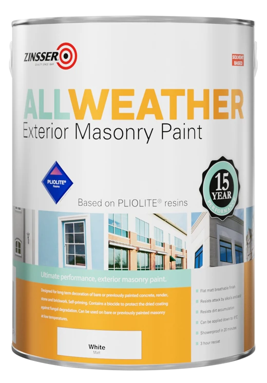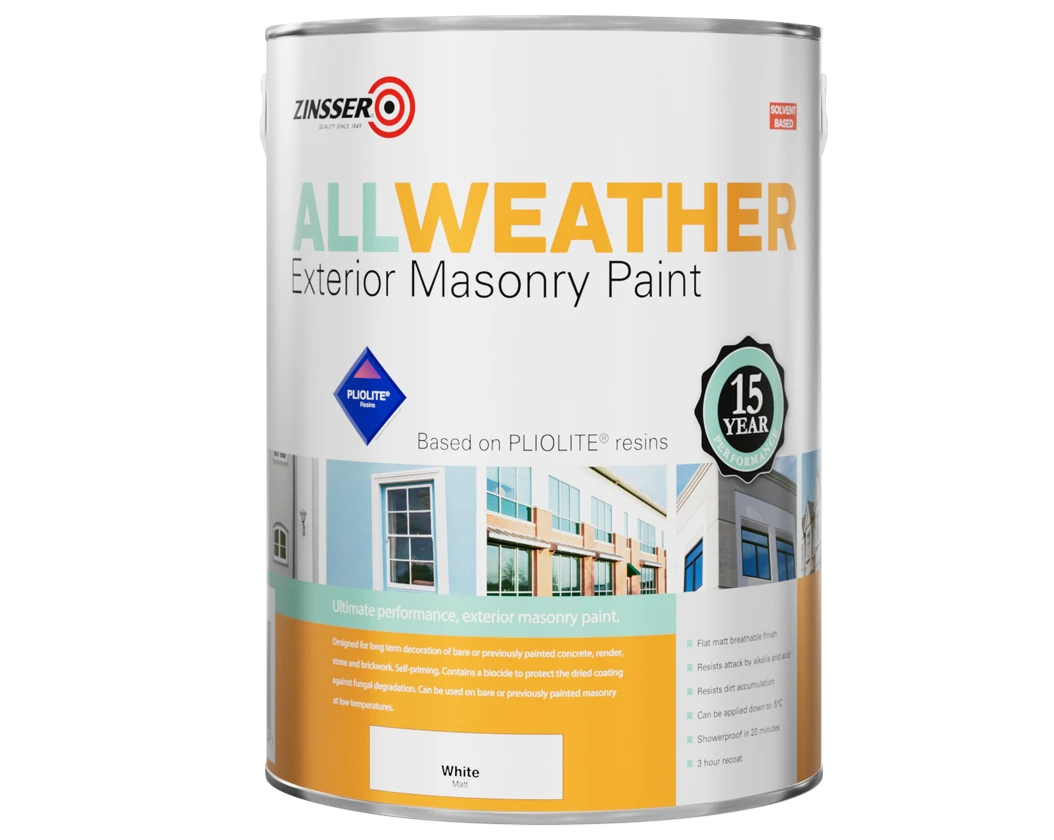 AllWeather Exterior Masonry Paint gives excellent resistance against cracking, blistering and flaking and protects against rain and severe weather.