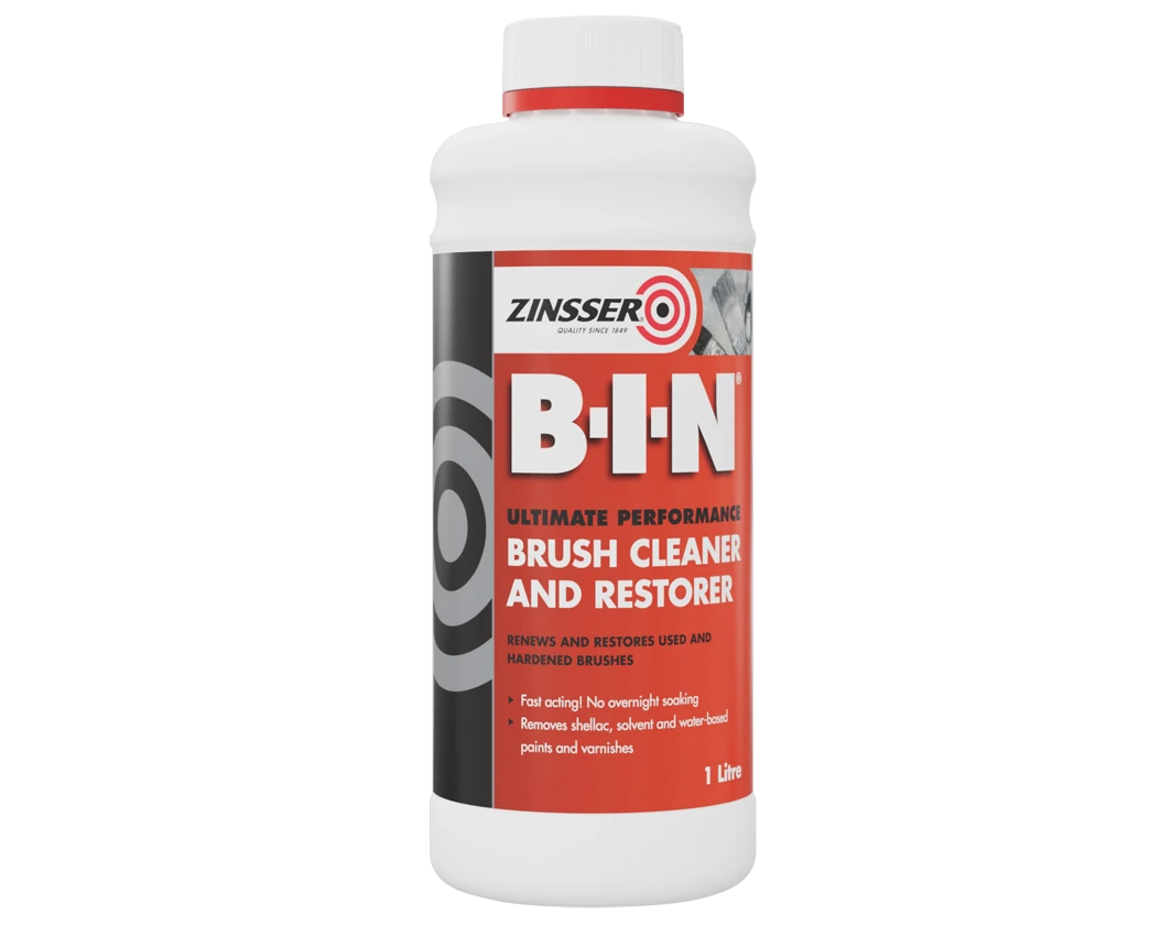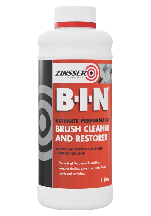 Remove Zinsser B-I-N® and most types of dried-on paint from brushes with ease using B-I-N® Brush Cleaner and Restorer.