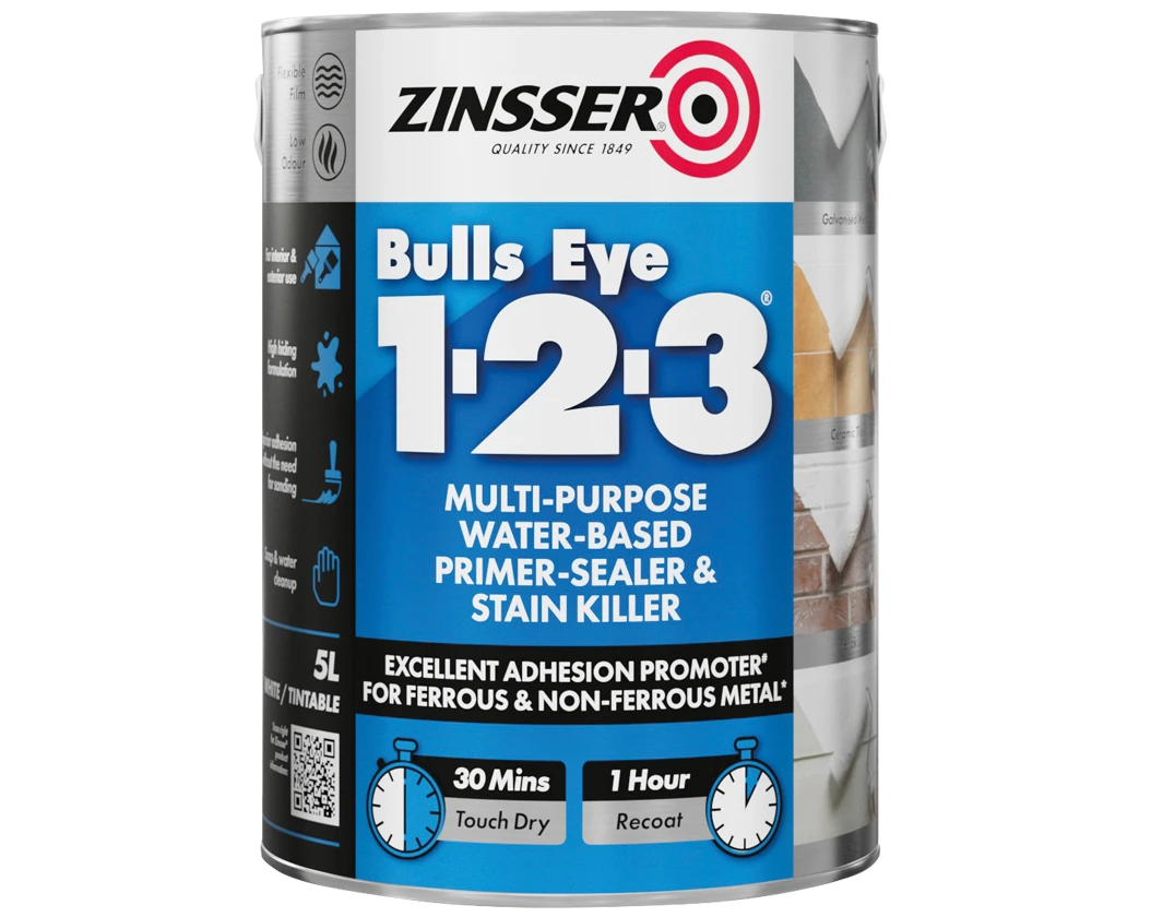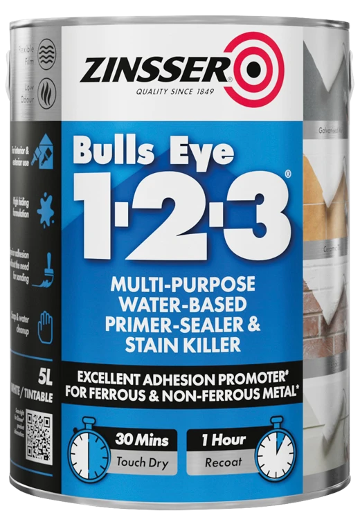 Bulls Eye® 1-2-3 is our classic universal interior and exterior, water-based, primer-sealer. It offers low odour application, quick drying convenience and excellent adhesion to glossy surfaces.