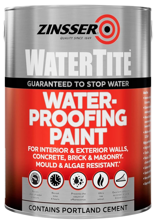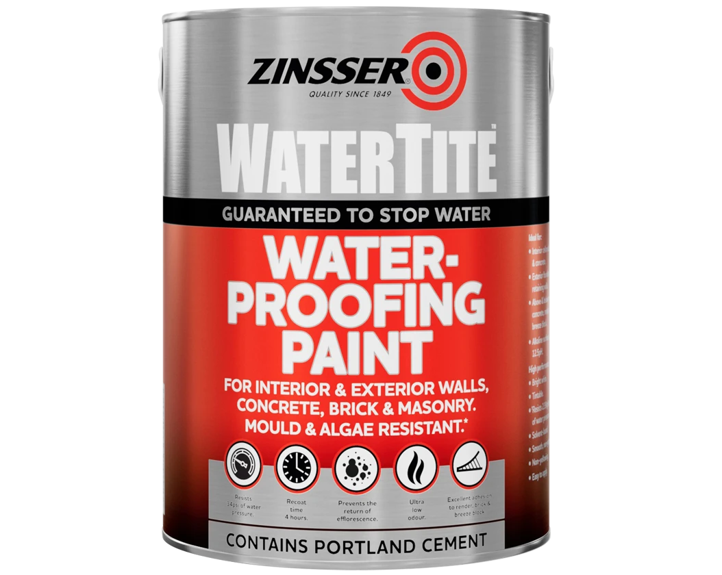 WaterTite® waterproofing paint has a unique solvent based formula that combines a state-of-the-art waterproofing resin with Portland cement to create a coating that stops up to 34psi of water pressure.